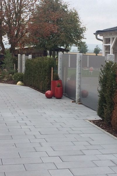 In Kombination mit Edelstahlpfosten oder Granitsäulen ist Glas für Garten, Terrasse oder Balkon robust und witterungsbeständig, pflegeleicht und langlebig.